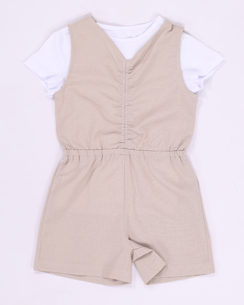 High Quality Girl's Set In Two Pieces, Overalls, Suspender, Open Leg, Elasticated + T-shirt, Round Neck, Made Of Cotton + Spandex + Rayon + Linen, Available In Multiple Colors And In Different Sizes For Ages From 4 – 12 Years Old