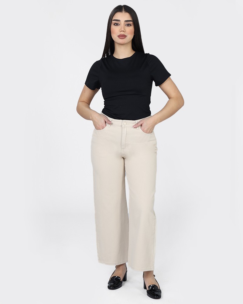 High Quality Women's Plain Jeans, Wide Fit Style, High Waist Design, Top Button + Zipper, Available In Beige Color And In Different Sizes From 27 – 36